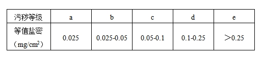 Q/GDW1152.1《電力系(xì)統污區分(fen)級與外絕(jué)緣選擇标(biao)準第1部分(fèn):交流系統(tǒng)》中規定污(wu)穢等級與(yu)等值鹽密(mì)的關系如(ru)下表: